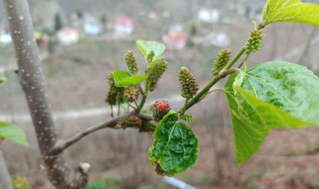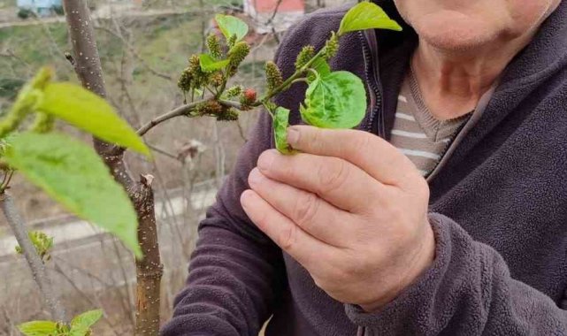 Onur "Kış ayını yaşadığımız bu günlerde ağaçlarımız bize sürpriz yaptı. Bölgemizde taflan olarak bilinen karayemiş ağacımız ve dut ağacımız hem çiçek verdi hem de meyve verdi. Şubat ayında böyle bir manzara görmek gerçekten şaşırtıcı" dedi.