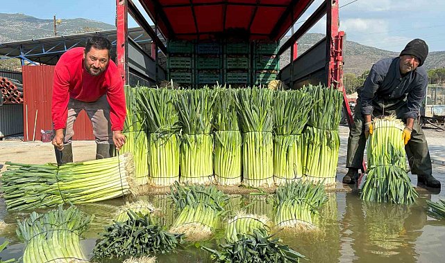 Menemen ilçesinin verimli ovalarında kış sebzesi pırasanın hasadı başladı. İzmirli üreticiler, bereketli topraklarda gerçekleştirilen hasatla ürünlerini tarladan sofralara ulaştırmanın heyecanını yaşıyor.
