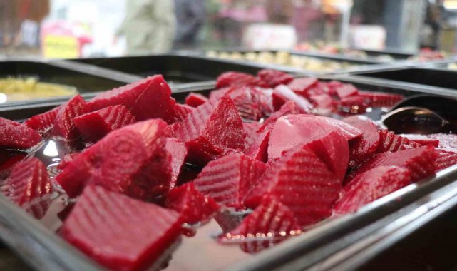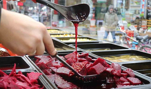 Kış mevsiminin etkisiyle tezgahlarda çeşitliliği artan ve sofraların vazgeçilmez lezzetleri arasında yer alan turşu, hem yemeklerin yanında hem de suyuyla vatandaşlardan yoğun ilgi görüyor. Kentte kilogram fiyatları 250 ile 350 lira arasında değişen turşularda en çok salatalık, pancar ve kırmızı lahana çeşitleri tercih ediliyor.