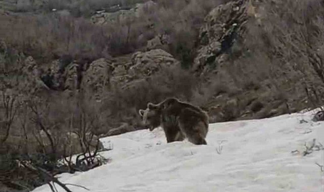 Hakkari'nin Şemdinli ilçesinde kış uykusundan uyanan ayı, Alan köyü yakınlarında yiyecek ararken görüntülendi. İlçe merkezine 28 kilometre uzaklıktaki İran sınırında bulunan Alan köyü kırsalında kış uykusundan uyanan bir ayı görüntülendi. Çetin geçen kış mevsimi ve bölgede halen kar olmasından dolayı yiyecek bulmakta zorlanan ayı, köy yakınlarına kadar indi. Bölgeden araçlarıyla geçen vatandaşlar o anları cep telefonlarıyla kayıt altına aldı. Bir süre görüntülenen ayı ardından bölgeden uzaklaştı.