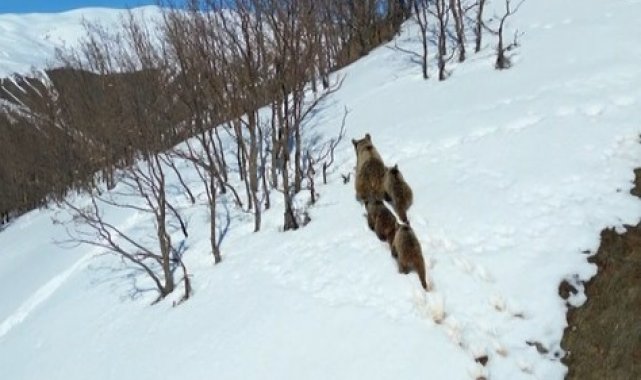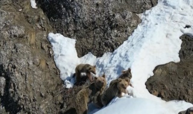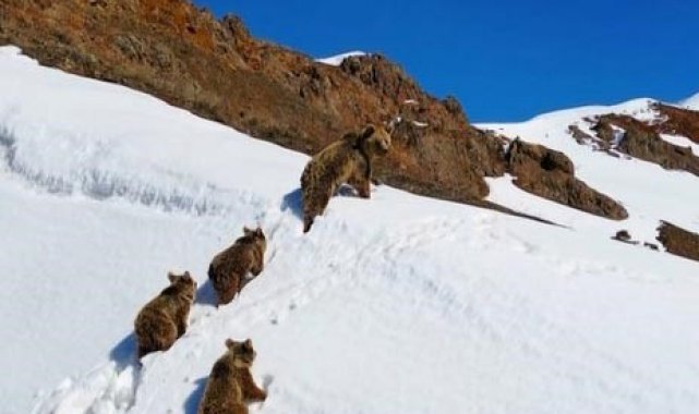 Bingöl'de doğada nadir rastlanan anlardan biri kaydedildi. Kış uykusundan uyanan bir bozayı ve üç yavrusu, karla kaplı arazide dolaşırken görüntülendi. Dron ile doğa gezgini Doğuş Başak tarafından kaydedilen görüntülerde anne ayının yavrularıyla birlikte temkinli şekilde ilerleyip, bir süre sonra gözden kayboldukları görüldü.