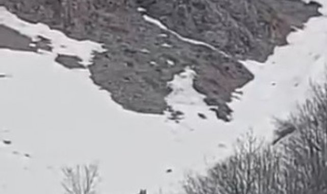 Bingöl'de kış uykusundan uyanan iki ayı, karla kaplı arazide oynarken görüntülendi.