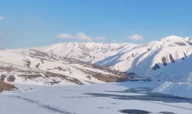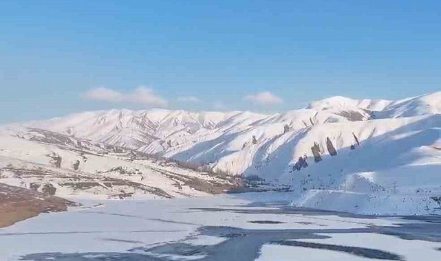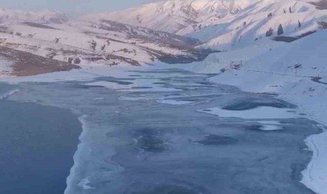Hakkari'nin Yüksekova ilçesinde bulunan Dilimli Barajı'nın yüzeyi, aşırı soğuklar nedeniyle kısmen dondu.