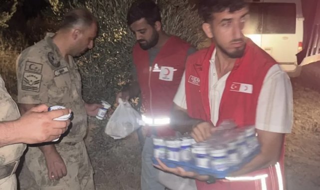 Hatay'ın Yayladağı ilçesinde çıkan orman yangınında görev yapan personele Kızılay ekipleri; kumanya, su ve ayran desteğinde bulundu.