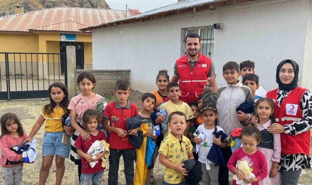 Kızılay gönüllüleri Ağrı'da köy ziyaretleriyle çocukları sevindirdi
