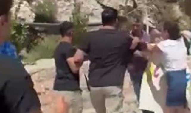 Muğla'nın Marmaris ilçesinde yer alan Kızılbük Termal Proje Sahası'na gelen bir grup, proje alanına zorla girmeye çalıştı. Alanda görevli özel güvenliklerle tartışan gruptaki bazı kişilerin güvenlik görevlisini itekleyerek tokat attığı belirtildi. Cep telefonu kamaerasına yansıyan görüntüler de izleyenleri şaşırttı.