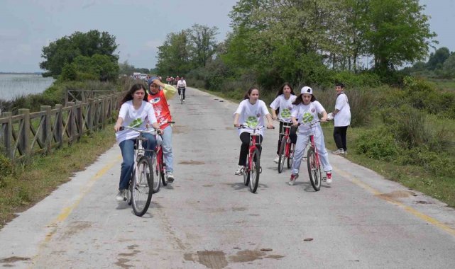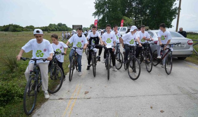 Samsun'da, Türkiye Çevre Haftası etkinlikleri kapsamında Kızılırmak Deltası Kuş Cenneti'nde "Temiz Çevre İçin Pedallıyoruz" sloganıyla düzenlenen bisiklet turunda öğrenciler ve protokol üyeleri doğaya karşı duyarlılık mesajı verdi.