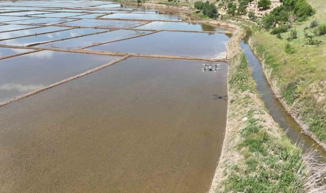 Kızılırmak Nehri'nin beslediği tarlalarda dron ile çeltik ekimi