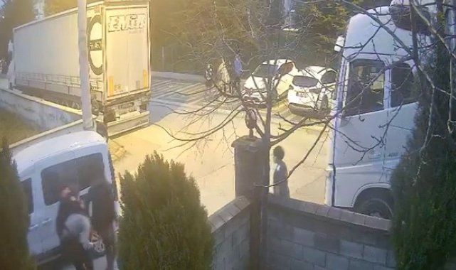 Olay, saat 18.00 sıralarında Mahmudiye Mahallesi 1. Kaya Sokak'ta meydana geldi. 3 genç kız sokakta sohbet ettikleri sırada sokaktan motosikletle geçmekte olan 2 kişiden biri, elindeki tabancayla defalarca ateş etti. Hızla kaçmaya çalışan motosikletli kişiler, evinden sokağa çöp atmak için çıkan jandarma uzman çavuş tarafından yakalandı. Jandarma 2 kişiyi yakalayıp, şüphelinin elindeki tabancaya el koyduktan sonra polis ekiplerine haber verdi. Motosiklet sürücüsü E.A.'ya (15) ehliyetsiz araç kullanmaktan 18 bin 706 TL cezai işlem uygulanırken, kurusıkı tabancayla ateş eden A.T. (15) ise ifadesi alınmak üzere karakola götürüldü. Şüphelilerin kızların yanından geçerken ateş ettiği ve hemen ardından jandarmanın şahısları yakaladığı anlar bir sitenin güvenlik kamerasına saniye saniye yansıdı.