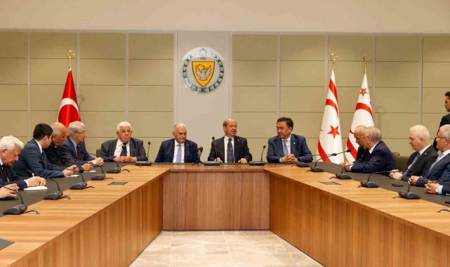 Kuzey Kıbrıs Türk Cumhuriyeti Cumhurbaşkanı Ersin Tatar, Türk Devletleri Teşkilatı (TDT) Aksakallar Konseyi Başkanı Binali Yıldırım ve beraberindeki heyeti ile yarın açılışı yapılacak Cumhurbaşkanlığı Külliyesi'nde bir araya geldi.