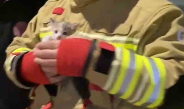 Vatandaşların ihbarı üzerine olay yerine gelen itfaiye ekipleri, merdiven yardımıyla çıktıkları noktada klima motoruna sıkışan yavru kediyi dikkatli bir çalışmanın ardından bulunduğu yerden kurtardı.
