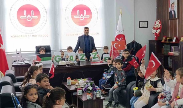 Erzurum'un Horasan ilçesinde, İlçe Müftülüğü bünyesinde eğitim gören 4-6 yaş Kur'an kursu öğrencileri, kumbaralarında biriktirdikleri harçlıkları Filistinli kardeşlerine ulaştırmak üzere bağışladı.