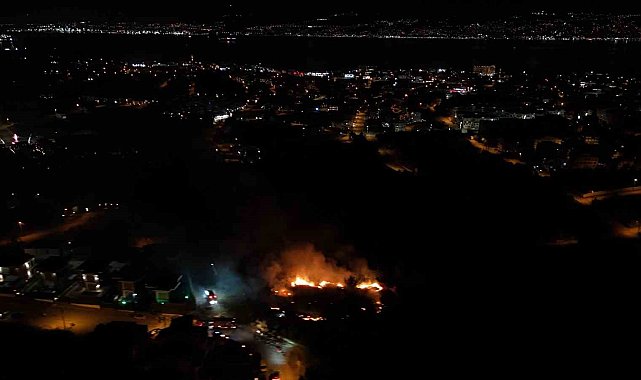 Kocaeli'nin Başiskele ilçesinde gece saatlerinde yerleşim yerlerine yakın noktada çıkan yangının alevleri geceyi aydınlattı. Çalılık alanda çıkan yangın, ekiplerin müdahalesiyle kontrol altına alınırken alevler havadan görüntülendi.