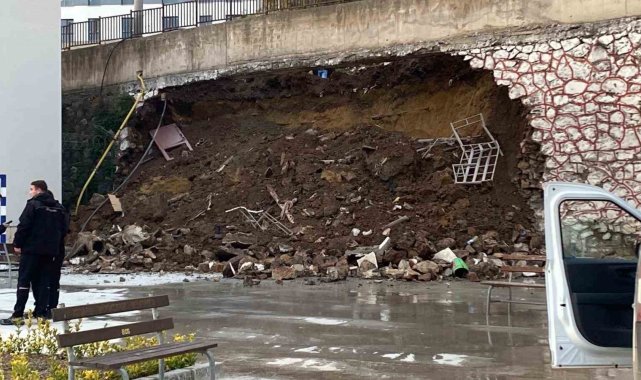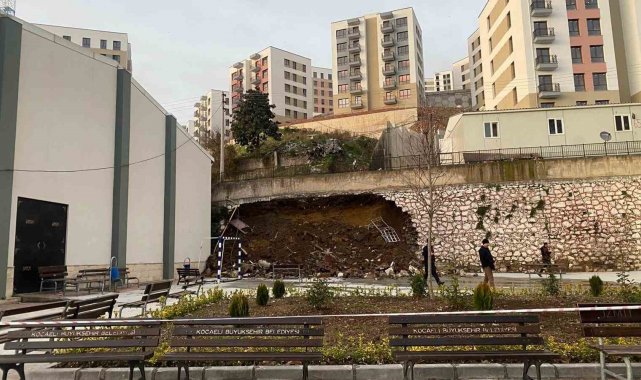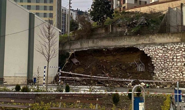 Kocaeli'de 10 metrelik istinat duvarı okul bahçesine devrildi