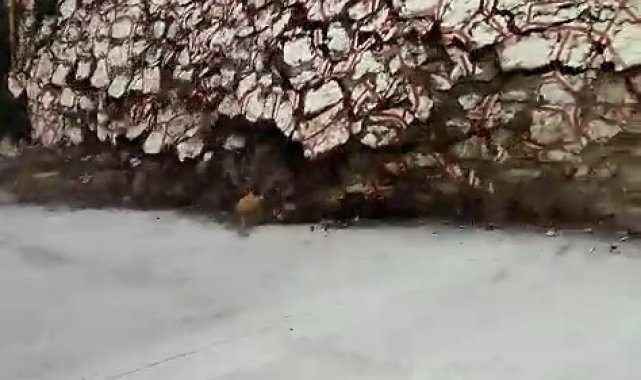 İstinat duvarının okul bahçesine devrildiği anlar ise o sırada bölgede bulunan bir vatandaş tarafından saniye saniye kaydedildi. Taş blokların lise bahçesine yığıldığı anları görüntüleyen vatandaş, "Gördüğünüz üzere komple duvar yıkıldı, kendiliğinden" dedi.