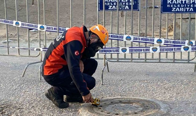Alevlerin gözle görülmez hale gelmesine rağmen gaz çıkışı sürerken, AFAD ekipleri bölgedeki gaz seviyesini ölçtü.