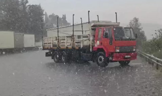 Kocaeli'de sağanak yağış ve dolu etkili oldu. Körfez ilçesinde aniden bastıran dolu ve yağmur sebebiyle TEM Otoyolu'nda sürücüler zor anlar yaşadı. Bazı sürücüler ilerlemekte güçlük çekince araçlarını sağa çekerek yağışın dinmesini bekledi. Yoğun yağış sebebiyle su birikintisi de meydana gelirken, trafikte zaman zaman aksamalar yaşandı.