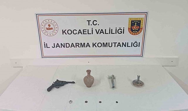 Kocaeli İl Jandarma Komutanlığınca, tarihi eser kaçakçılığı ile mücadele çalışması başlatıldı. Yapılan istihbari çalışmalar sonucunda dün Dilovası ilçesinde bir araçta arama yapıldı. Araçta yapılan kontrolde 3 sikke, 2 cam anfora, çömlek anfora, yüzük ve Osmanlı dönemine ait tabanca ele geçirildi. Malzemelere el koyulurken olayla ilgili bir şüpheli hakkında adli işlem başlatıldı.