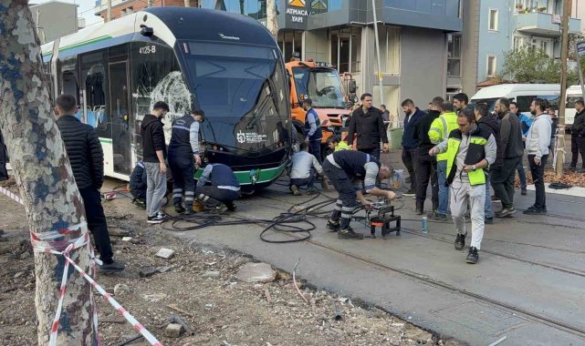 Kaza nedeniyle bölgedeki tramvay seferleri durduruldu.