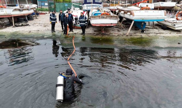 Kocaeli'de deniz dibinden 50 lastik çıktı