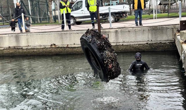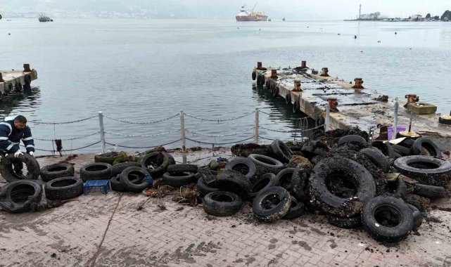 Kocaeli'de Körfez Tütünçiftlik sahilinde gerçekleştirilen dalışta deniz dibinden 50 araç lastiği çıkarıldı.