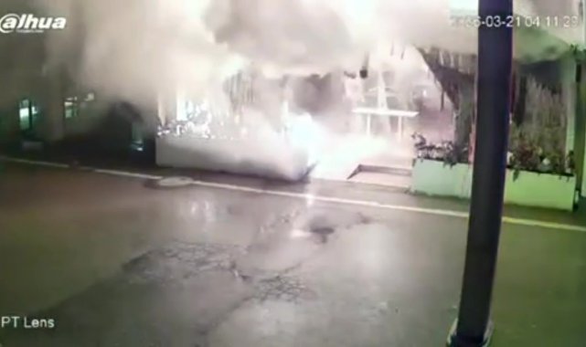 Şüpheliler, emniyetteki işlemlerinin ardından adli mercilere sevk edilecek. Kundaklama olayı bir iş yerinin güvenlik kamerasına yansıdı.