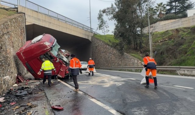Kocaeli'nin Çayırova ilçesinde istinat duvarına çarpan tırın sürücüsü ağır yaralandı.