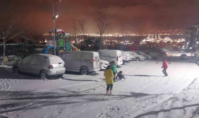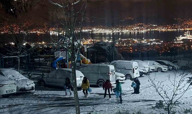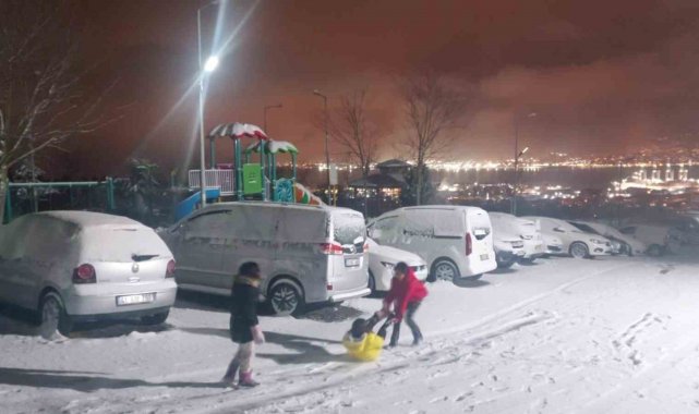 Kocaeli'de etkili olan "Altay kar fırtınası" etkisini arttırırken, sürücüler ilerlemekte zorluk çekti. Çocuklar ise karanlığa rağmen karın tadını çıkardı.