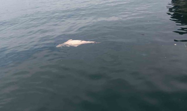 Kocaeli'nin Karamürsel ilçesinde kıyıya yakın bir noktada, su yüzeyinde çürümekte olan ölü yunus görüntülendi.