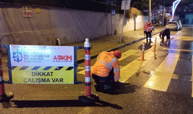 Öte yandan ekipler, İzmit Tepeköy Mahallesi Dr. Ferdi Koçal İlkokulu önünde yaya geçidinin yakınında yan yatan ve devrilme tehlikesi oluşturan yaya yürüme yolu tabelasına müdahale etti. Tabela direği yerinden çıkarılarak, sağlam bir şekilde yeniden monte edildi. Ayrıca yerinden çıkan esnek şerit ve delinatörler de bu kapsamda yenilendi. Yapılan müdahale ile öğrenci, öğretmen ve velilerin okula ulaşımı daha güvenli hale getirildi.