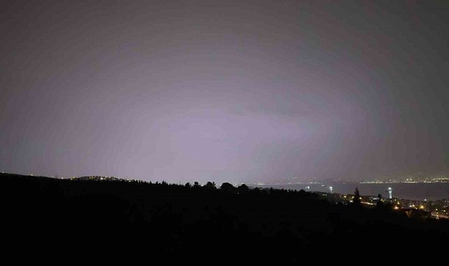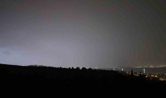 Kocaeli'de şimşekler adeta geceyi gündüze çevirdi