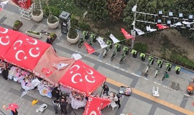 Kocaeli'de kuvvetli rüzgar ve toz fırtınası, çöp konteynerlerini devirdi, kent merkezindeki stantları uçurdu. Şiddetli rüzgar nedeniyle hurda yüklü bir motosikletin devrildiği anlar da saniye saniye kameralara yansıdı.