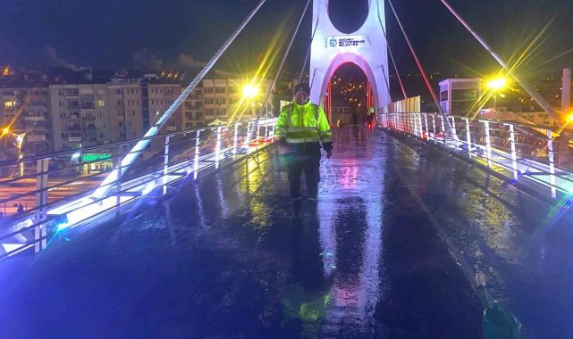 Kocaeli'de belediye ekipleri, kış aylarında vatandaşların güvenli ulaşımını sağlamak amacıyla üst geçitlerde buzlanma ve don olaylarına karşı özel solüsyonla çalışma yürütüyor.