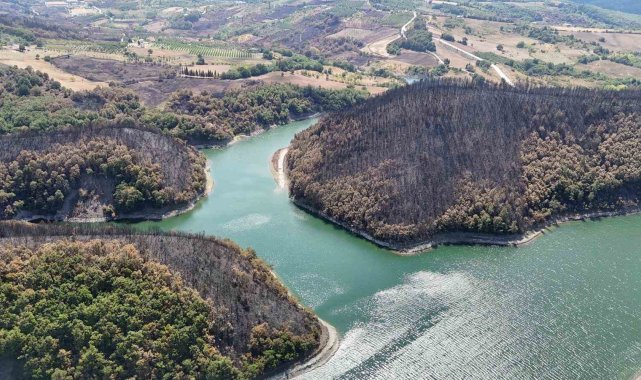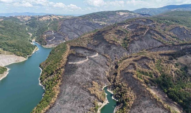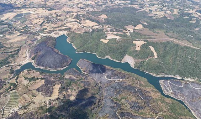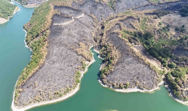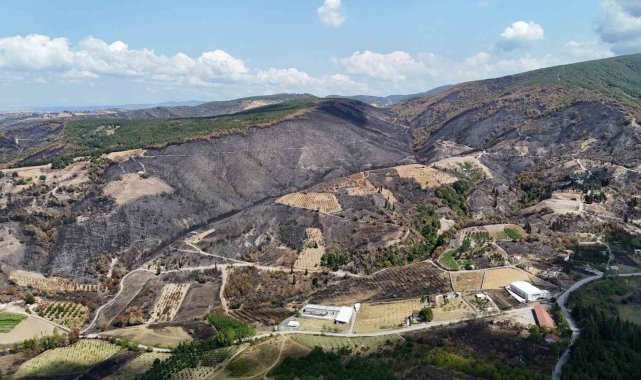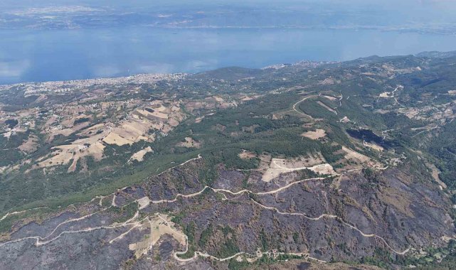 Kocaeli'nin Karamürsel ilçesinde geçtiğimiz günlerde çıkan orman yangınından geriye kalan acı manzara havadan görüntülendi.