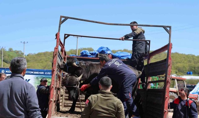 Babaköy Mahallesi'nde düzenlenen törende, üretimi canlandırmak ve manda neslini korumak amacıyla hayata geçirilen proje kapsamında kura çekimi yapılarak damızlık mandalar sahiplerine teslim edildi.