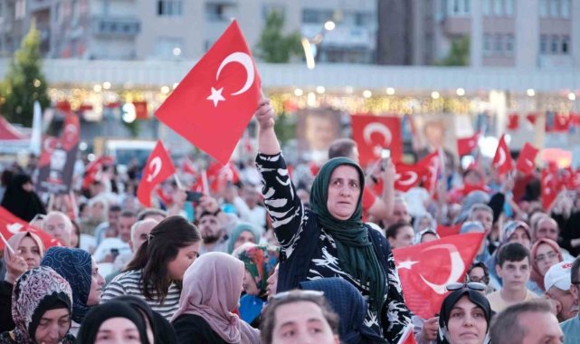 "Hep diyoruz ya; 'iman varsa, kararlılık varsa, cesaret varsa, imkan ve şeraitin ne olduğunun hiçbir önemi yok'. Bu meydanlarda gördük. O gece böyle değildi, bu meydan adı Milli İrade değildi. O gece meydanda olanlar bilir ki, bu meydan doldu. Haber verilmeden doldu. Evinden çıkıp gelenlerle doldu. Cumhurbaşkanımız Sayın Recep Tayyip Erdoğan'ın davetiyle bir kez daha gördük. 'Gelsinler bakalım, toplarıyla tüfekleriyle ne yapacaklar görelim' sözünden sonra akın akın doldu. Şu an yine doldu. Yine sahip çıktınız. Başta aziz şehitlerimize gazilerimize ve onların biricik yakınlarına yürekten teşekkür ediyorum. Diğer yandan o gece herhangi bir gece de değildi. İlmek ilmek işlenmişler, yıllarca hazırlanmışlar. Göründüğü gibi buradan ibaret değillermiş. 40 yıl hazırlanmışlar. Aslında Anadolu topraklarına geldiğimiz günden beri defalarca hazırlandılar. Bunu ihanetin tarihiyle başlatırsak o zaman çok daha geriye gitmek lazım. Oradan başlattığında ise onların bu sevdadan hiçbir zaman vazgeçmediğini görürüz. Bu topraklar sayısız medeniyete mezar olmuş topraklar. Şu milletimizin kararlılığını gördükçe biz Hititlerden daha çok yaşayacağız bu topraklarda. İlelebet payidar olacağız. Dil belki değişecek, ifade ediş biçimini değişecek. Ama hep aynı şeyi söyleyeceğiz, hep 'Korkma' diyeceğiz. Hep, 'İman varsa imkan vardır, ben ezelden beri hür yaşadım, yaşarım' diyeceğiz. Biz böyle demeye devam ettiğimiz sürece bu topraklar, bu devlet ve meydanlar bizim olmaya devam edecek. Onlar çok güzel planlar yaptılar ama bir yerde hesap hatası yaptılar. Onlar ne yaparlarsa yapsınlar bizim aziz milletimizin iman dolu göğsü vardı. Kaderin üstünde kader vardı, göklerden gelen bir karar vardı. O gece aziz milletimiz, iman dolu göğsünü siper etti. Bu milletin evlatlarının karşısında şaşırdı ve korkuyla karıştılar. İman galip geldi, kararlılık, cesaret galip geldi"