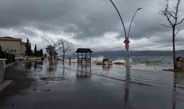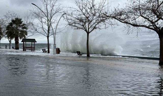 Kocaeli'nin Gölcük ve Başiskele ilçelerinde sabah saatlerinde etkili olan lodos nedeniyle dalgalar metrelerce yüksekliğe ulaştı. Deniz taşınca bazı yollar göle döndü.