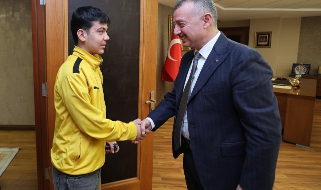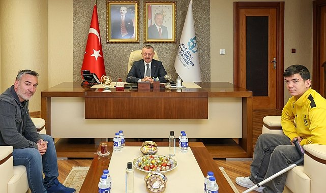 Efe'yi Tahir Büyükakın makamında konuk etti. Efe Kartal Öztay, babası Atakan Öztay ile Başkan Büyükakın'ı ziyaret ederek olayın gerçekleştiği günden bugüne kadar tüm desteği için teşekkür etti.