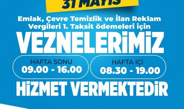 taksitinin 31 Mayıs Çarşamba günü sona erecek olmasından dolayı vatandaşların vergi ödemelerini rahatlıkla yapabilmesi için çalışma saatlerinde düzenleme yaptı