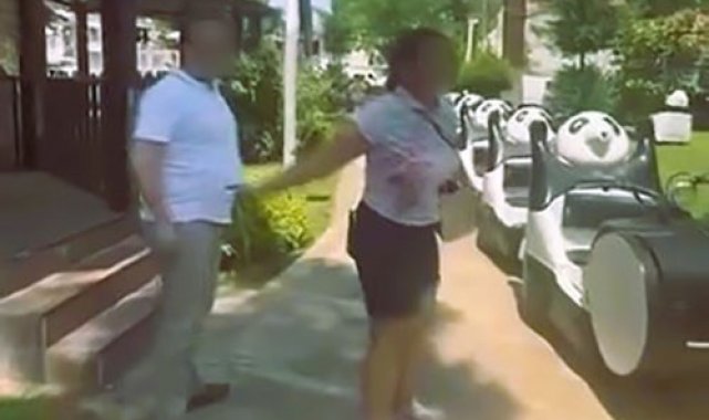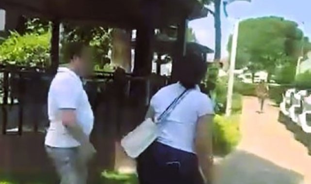 Kocasıyla birlikte parkta bastığı kadını saçından sürükledi