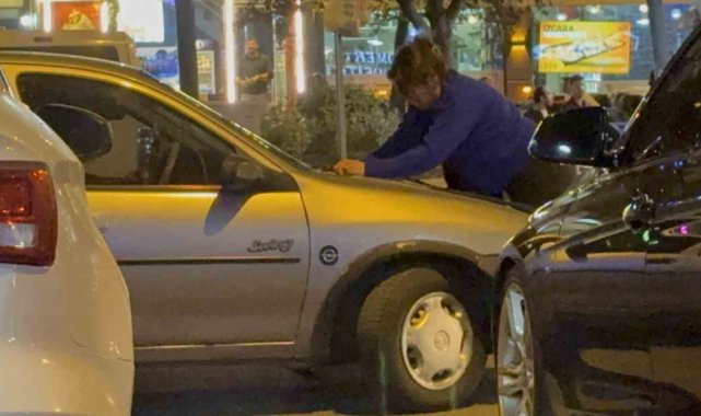Kocasıyla tartışan kadın otomobilin kaputuna yattı