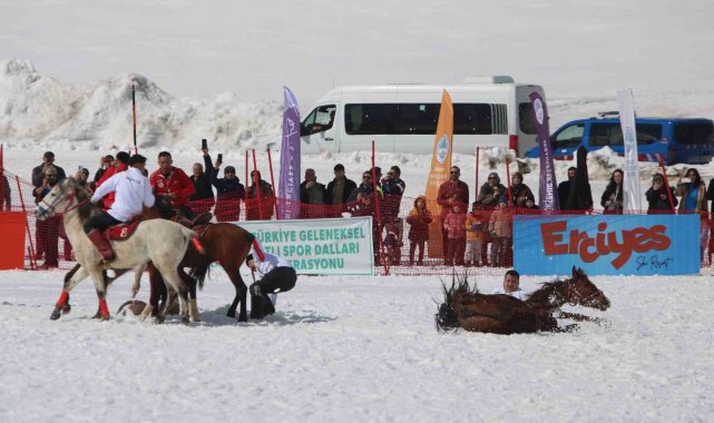 Türkiye'de ilk kez Erciyes'te düzenlenen Kökbörü Oyunları'nda ata sporu heyecan yaşanırken, nefes kesen mücadelelere sahne oldu.