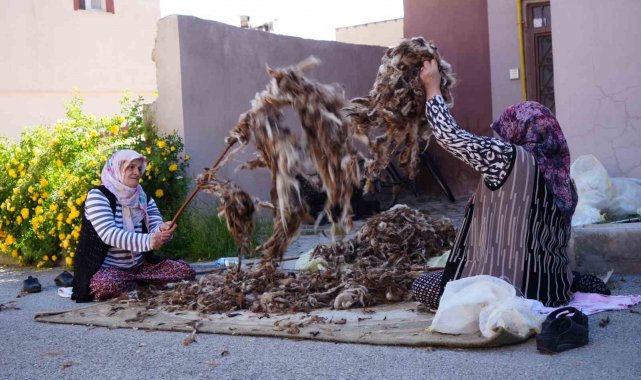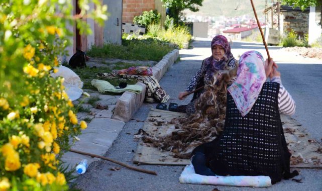Kollar sağlık için sıvandı: Bayburtlu kadınların yün çırpma mesaisi başladı