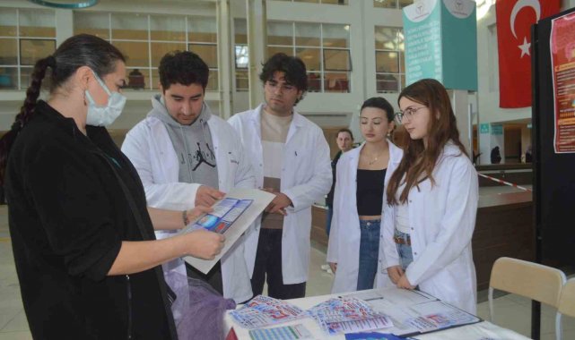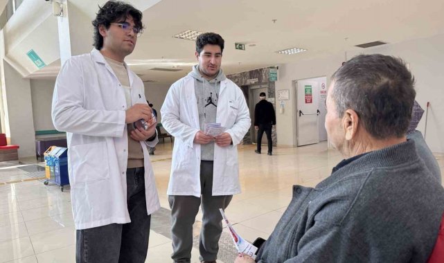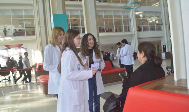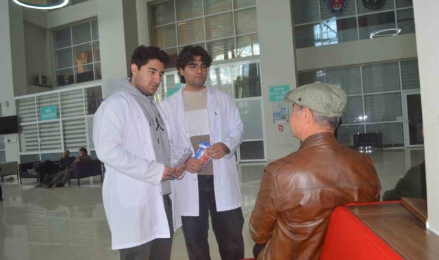 Hastane girişinde kurulan bilgilendirme standında, tıp fakültesi 1. sınıf öğrencileri gün boyu vatandaşlarla bir araya geldi. Kolon kanserinin dünyada en sık görülen üçüncü kanser türü olduğuna dikkat çeken genç adaylar, hastalığın gelişim süreci ve korunma yolları hakkında detaylı sunumlar yaptı.