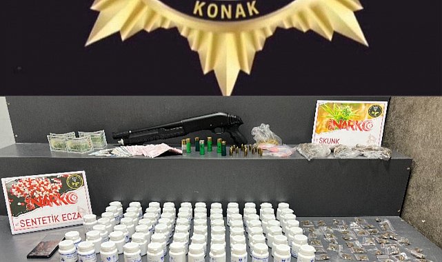 Konak İlçe Emniyet Müdürlüğü ve Narkotik Şube Müdürlüğü personelinden oluşan Narkoalan ekipleri, 11-18 Haziran tarihleri arasında 10 ayrı iş yeri ve ikamete baskınlar düzenledi. Belirlenen adreslerde yapılan aramalarda, bonzai, kokain, metamfetamin, esrar ve uyuşturucu nitelikli hap ile 2 hassas terazi ve uyuşturucu ticaretinden elde edildiği değerlendirilen 181 bin 100 TL nakit para ele geçirildi. Öte yandan, baskınlarda 5 yıl kesilmiş hapis cezasıyla aranan bir zanlı ile ruhsatsız tabanca ve tüfekler ele geçirildi.