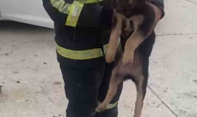 Konteyner altında sıkışıp mahsur kalan yavru köpeği itfaiye ekipleri kurtardı