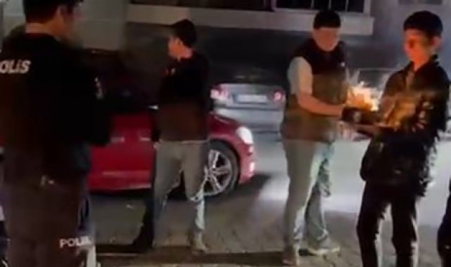 Konteyner kente kavga ihbarına gelen polisler pasta ve bayraklarla karşılandı