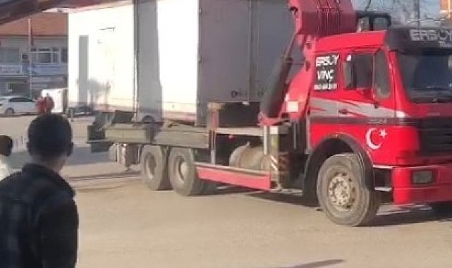 Konteyner taşıyan vinç sanayi nizamiyesine takıldı