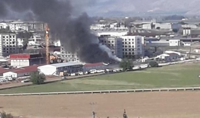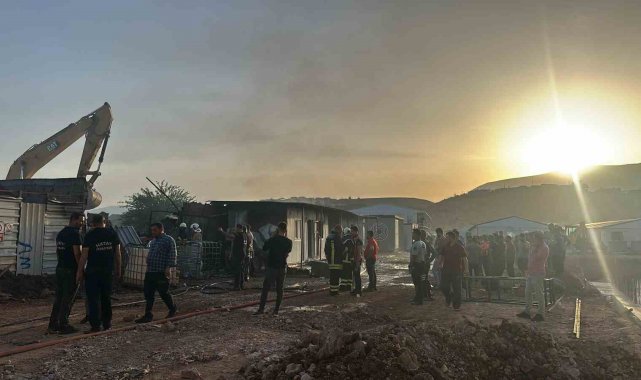 Hatay'da şantiye alanında işçilerin kaldığı konteyner yatakhane alevlere teslim oldu.