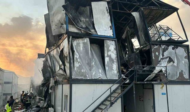 Hatay'da şantiye işçilerinin kaldığı konteyner yatakhane alevlere teslim olarak kullanılmaz hale geldi.